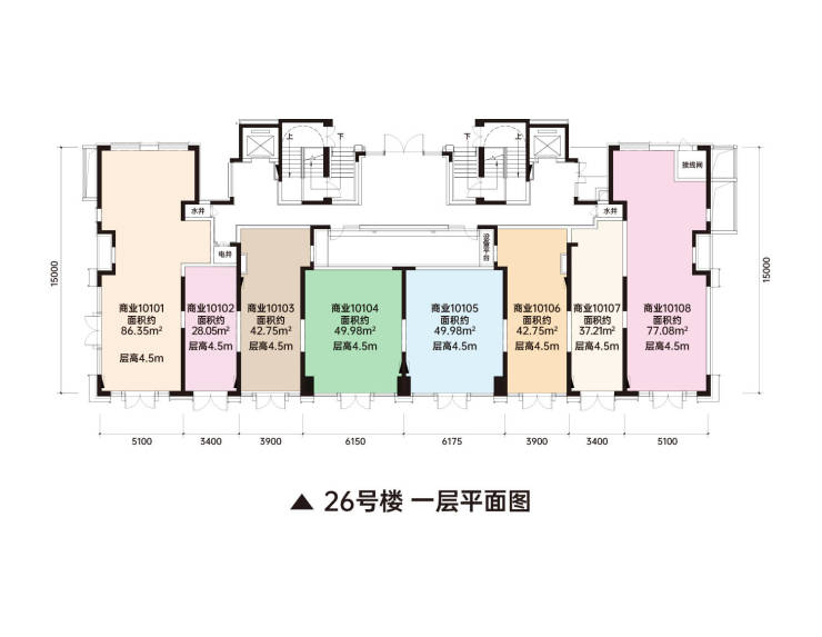 纯一层商铺公摊面积仅为3-5%(行业平均10%-15%),可外摆空间5-15㎡/铺,可摆经营(如烧烤、茶饮外摆区),实际经营面积增加20%-30%,坪效提升显著。