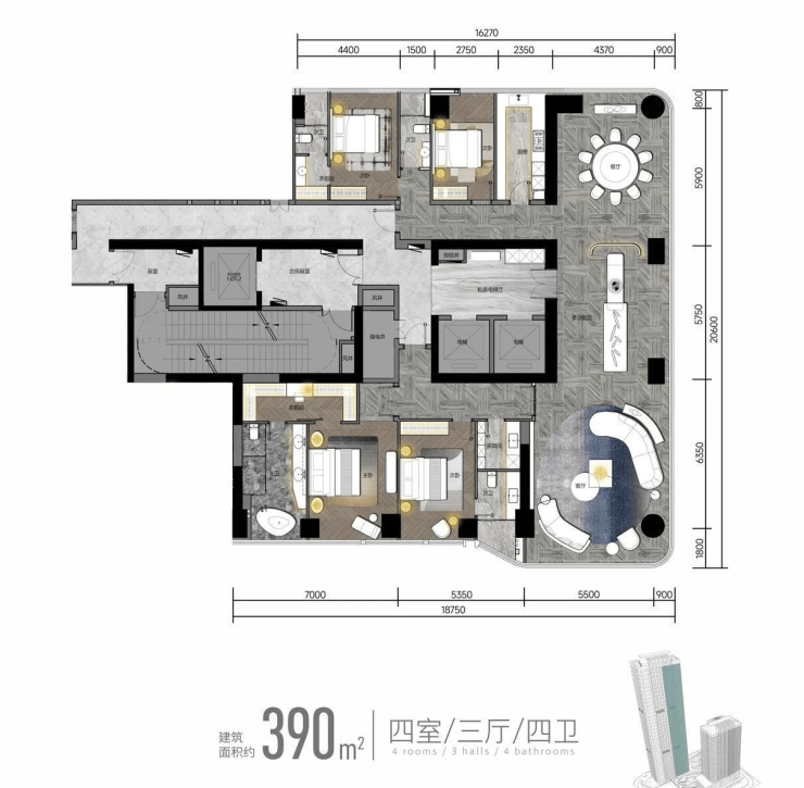 三重入户动线,主人与家政分开全套房设计,全家超尊贵、超私密的生活感受端厅套房,一动一静,兼顾共性与个性生活需求高效地控制短动线内,平衡全家人的生活