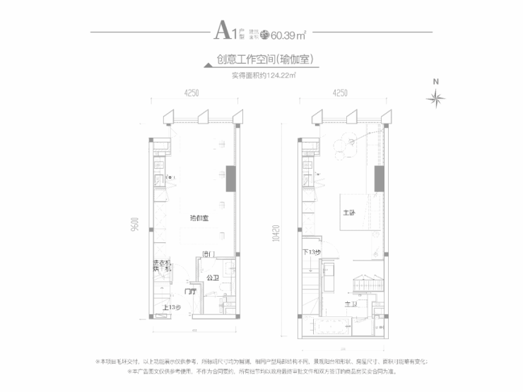 复式SOHO:建筑面积约60-128㎡(买一得二)